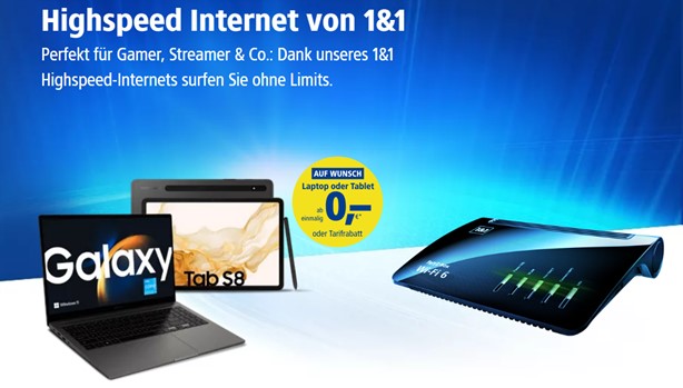 12,50€ - 1&1 DSL ab 100 mit WLAN-Modem / ohne Hardware * 24 Monate